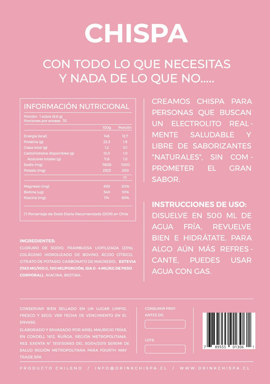 Incluso si nos devuelve un contenedor vacío, le reembolsaremos su compra. Creemos en nuestros productos al 100%, por lo que si por alguna razón decide que no son para usted dentro de los 90 días posteriores a la compra, avísanos por correo electrónico: info@drinkchispa.cl